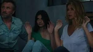 • 11/ Audrey Roussel et ses trois ados, Jordan, Jack, et Lizzie, sont assis sur la plage.